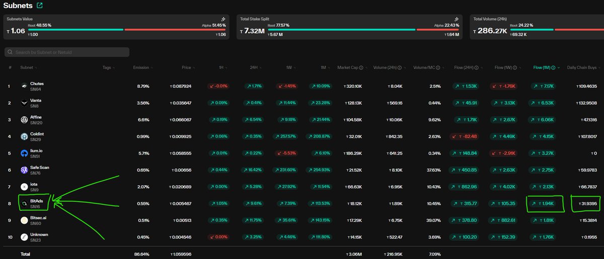 Subnet emissions up by 114%