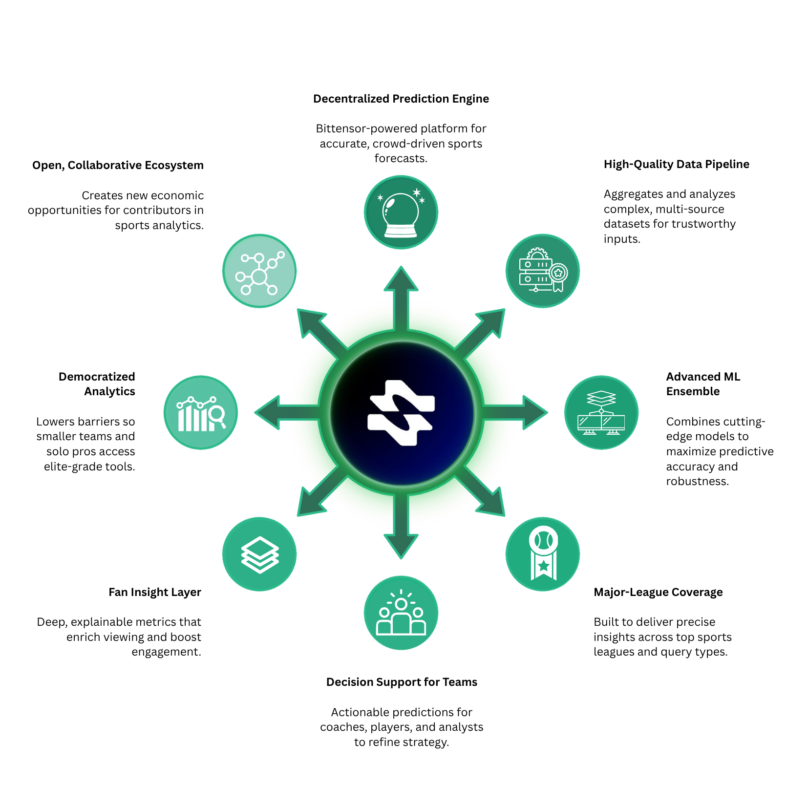 Sportstensor is driven by the belief that combining advanced AI with sports can revolutionize the entire sports ecosystem. Their vision is grounded in several core principles: